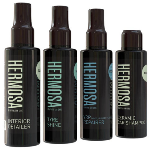 Powerful results, compact convenience. The Hermosa 100ml Sample Box lets you experience four of our best-selling products in one easy kit — perfect for testing, gifting, or keeping in your glovebox for quick detailing on the go.